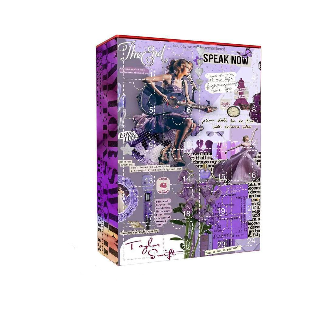 Inside you'll discover 24 iconic Taylor Swift collectibles and surprises. Each day reveals a different themed item, photo card, or emblematic piece.